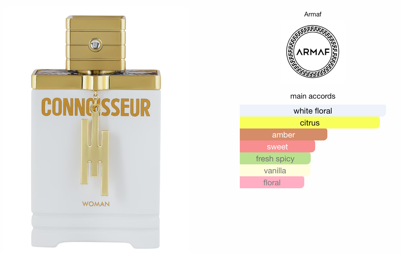 Connoisseur Women EDP by Armaf is a luxurious amber floral fragrance launched in 2024, designed for the modern woman who embodies elegance and sophistication. Drawing inspiration from Middle Eastern traditions, this exquisite scent blends feminine notes with rich, alluring warmth that lingers gracefully. Crafted with exceptional artistry by Armaf in the UAE, it represents timeless beauty and refined luxury in a 100ml spray, making it a distinguished choice for women seeking a signature fragrance that radiates poise and allure.
